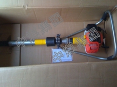 捣固镐是一种适用于铁路线路道床石喳捣固作业的手提、便携式专用工具。zmjt049它是由汽油机作为原动力,通过离心式离合器、偏心轴、橡胶减震器、拖动镐体产生高频扰动力,使枕下石喳重新排列密实,从而实现对道床石喳捣固的目的。